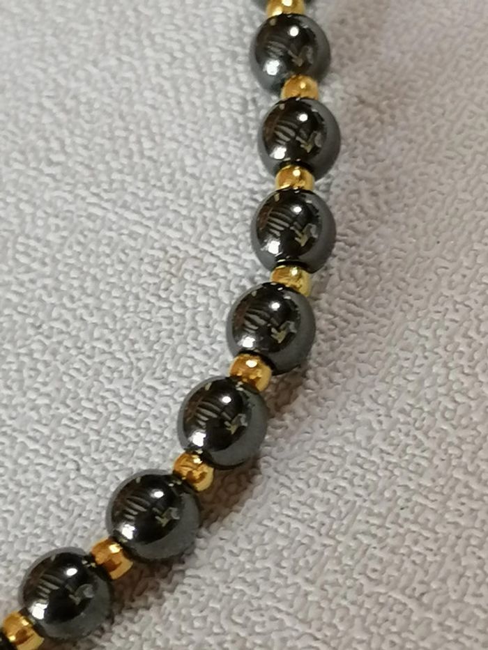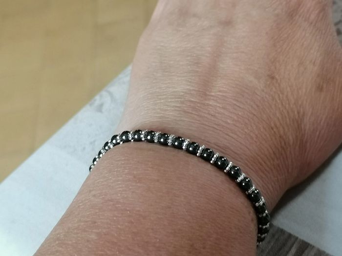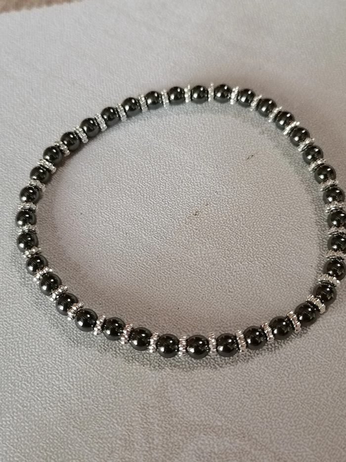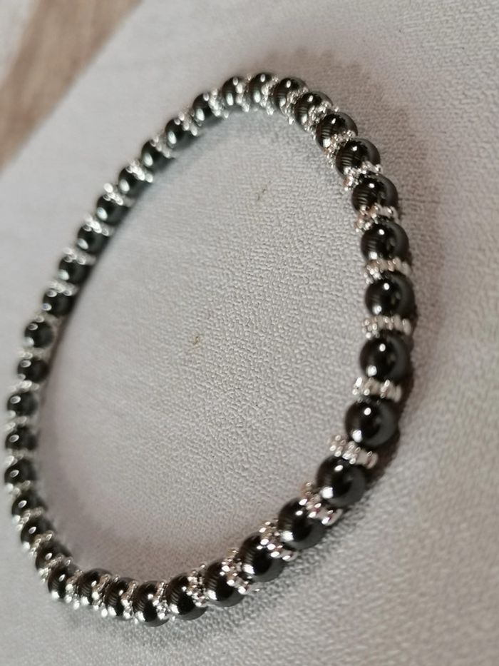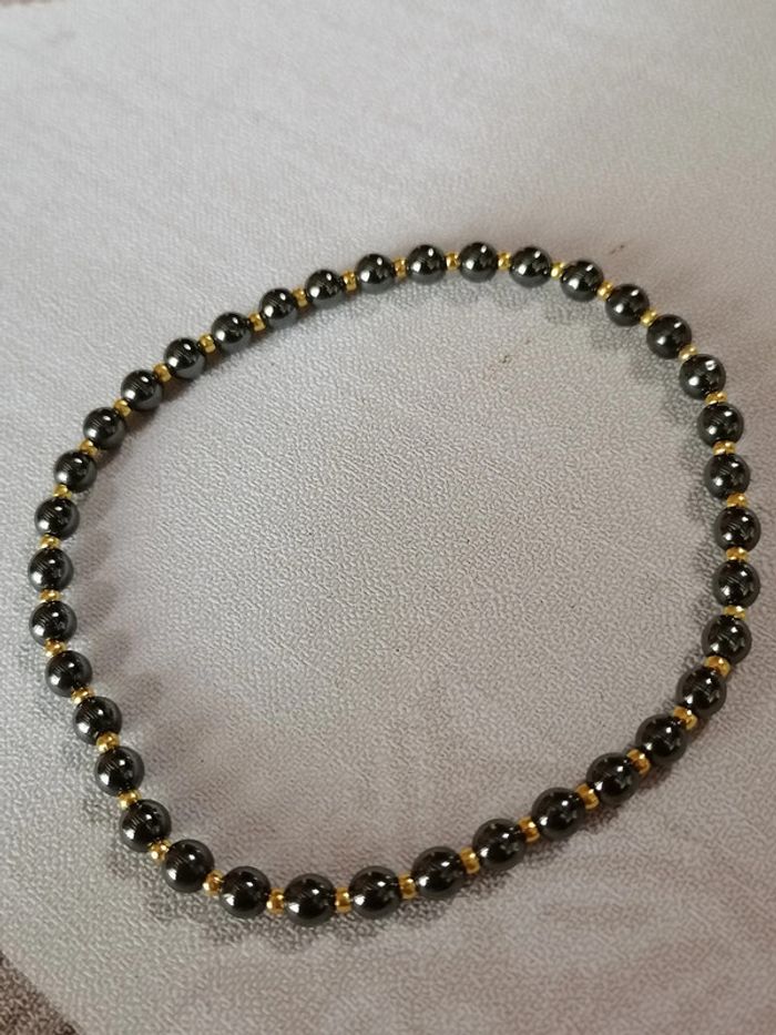 Jolie bracelet élastique avec ses véritables perles en hématite noires et ses petites perles d'espacement dorées ou argenté au choix. 11,00 euros pièces