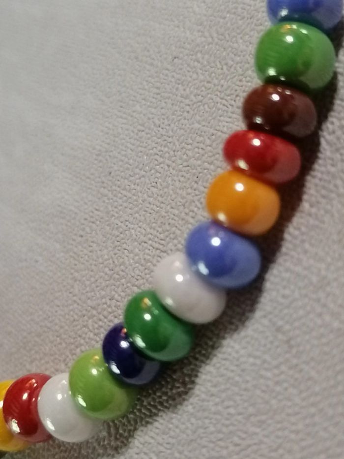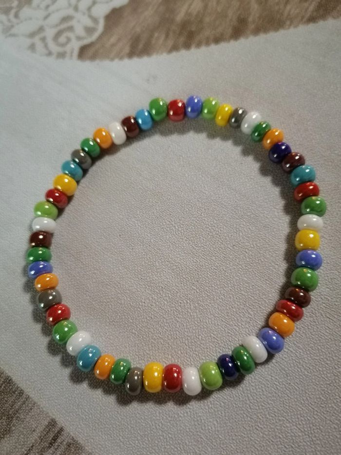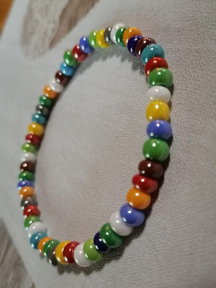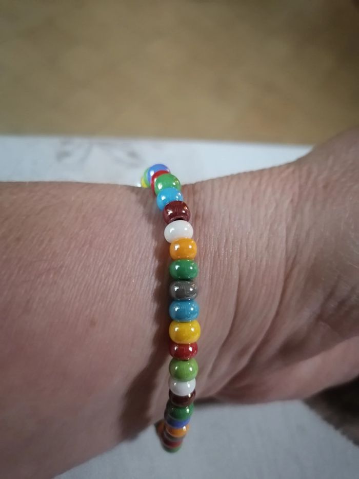 Jolie bracelet élastique avec ses jolies petites perles en verre multicolores.
