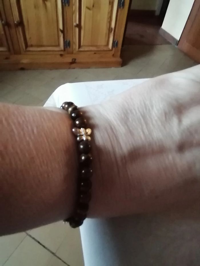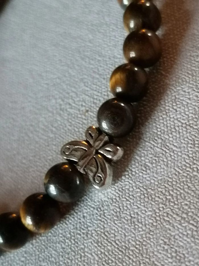 Bracelet élastique avec ses jolies petites perles œil de tigre et ses deux petits papillons 🦋 🦋.