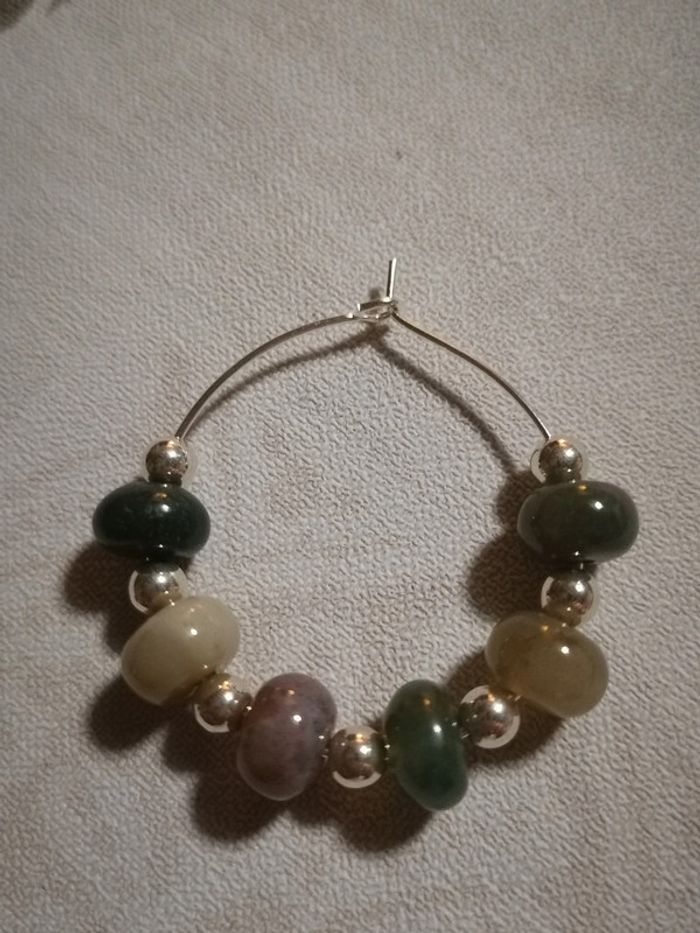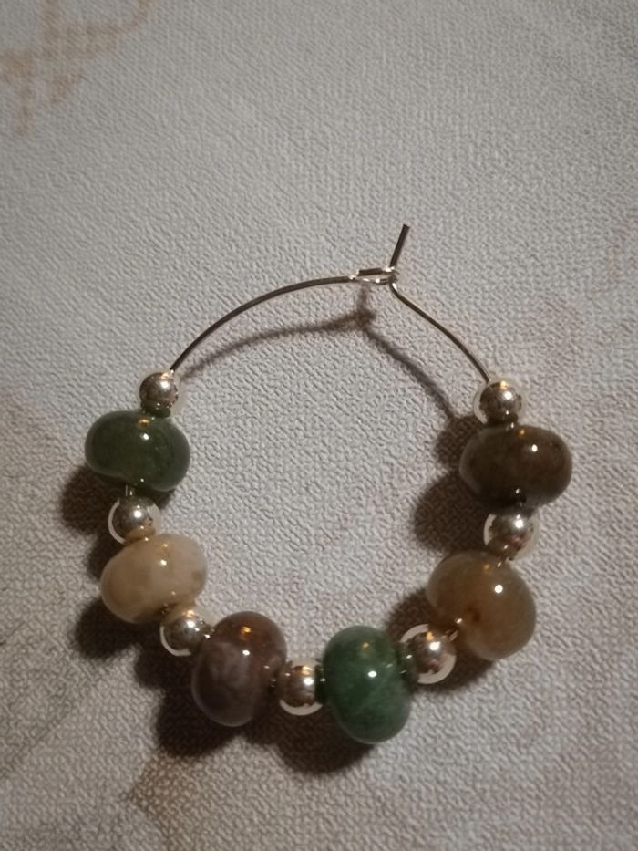Jolie boucles d'oreilles créoles avec ses véritables perles en agate indienne.
