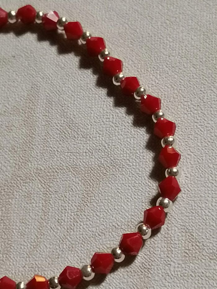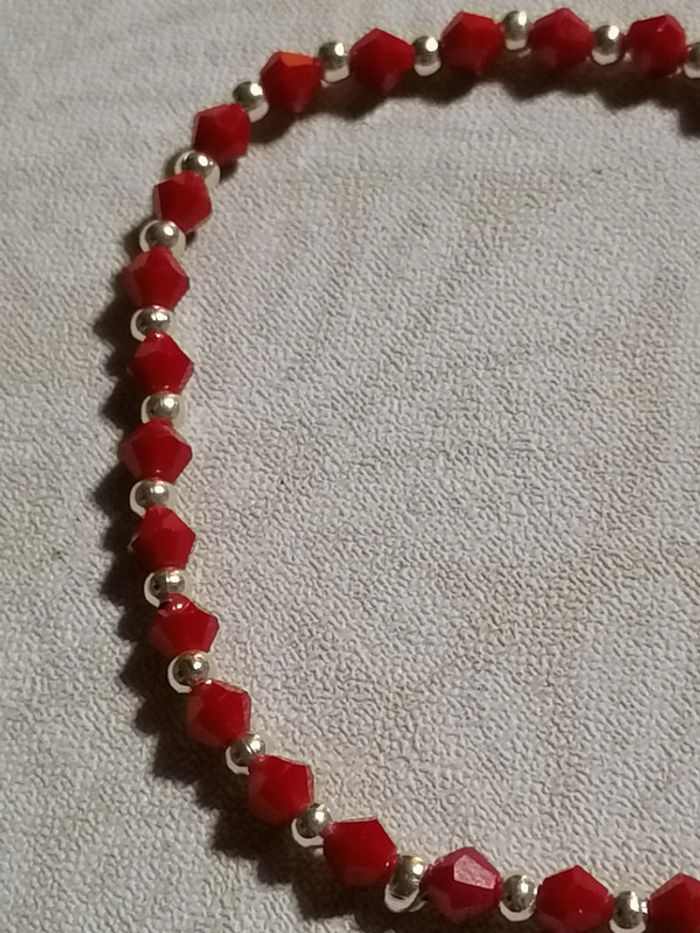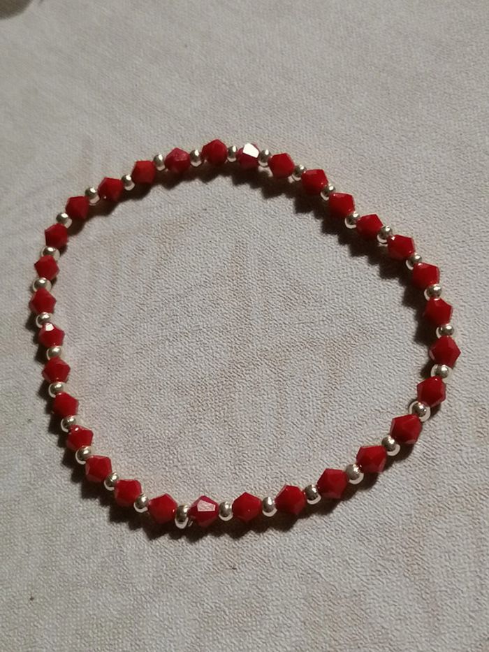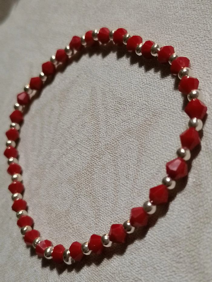 Jolie bracelet élastique avec ses jolies petites toupie rouges et ses pet perles argenté