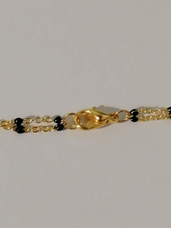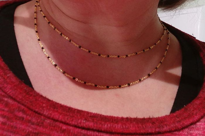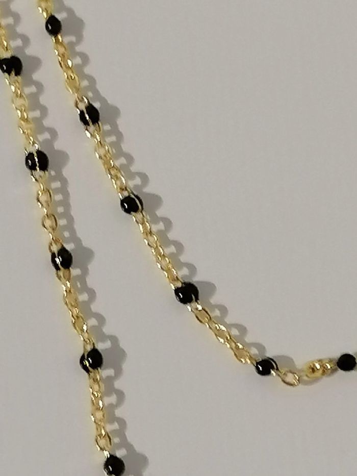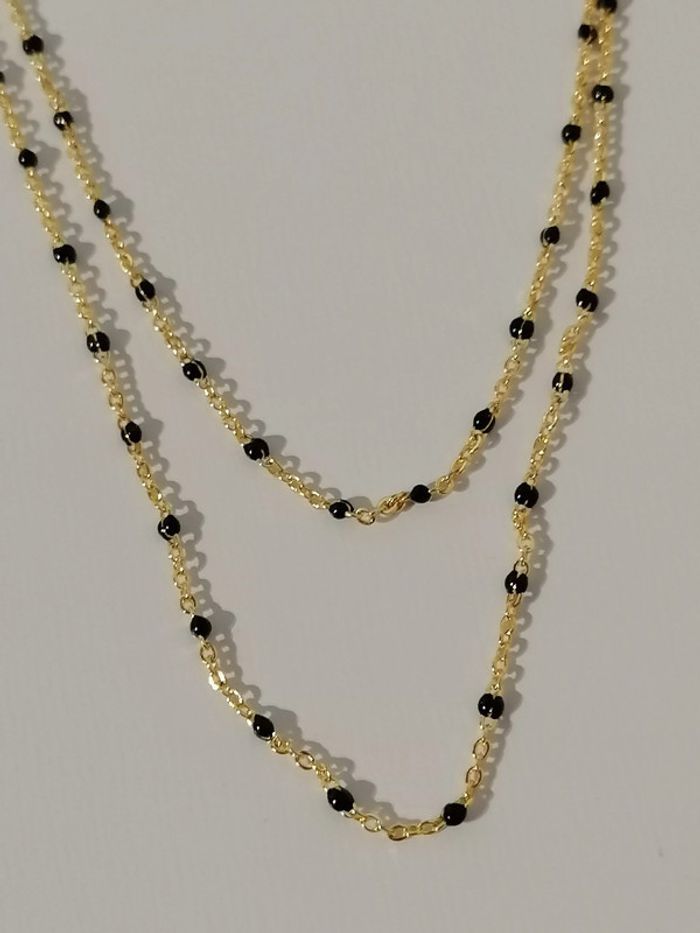 Jolie collier double doré avec ses petites perles noires.. 43 cm et 45 cm. Porté juste pour la photo