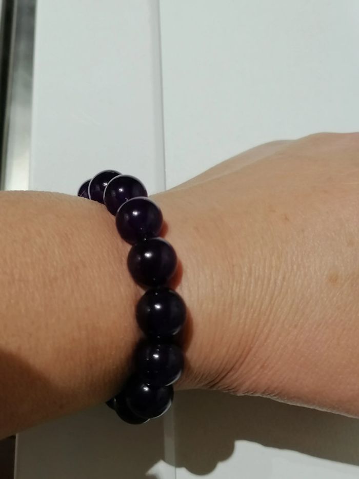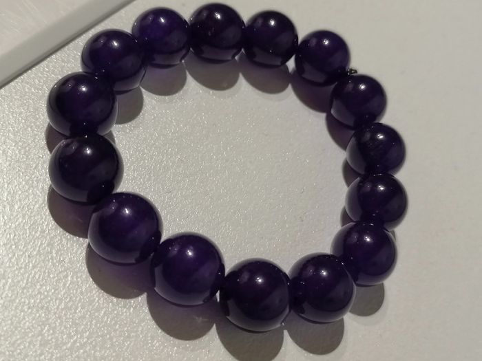 Jolie bracelet élastique avec ses jolies perles violettes 12mm. 18 cm. Autre taille sur demande