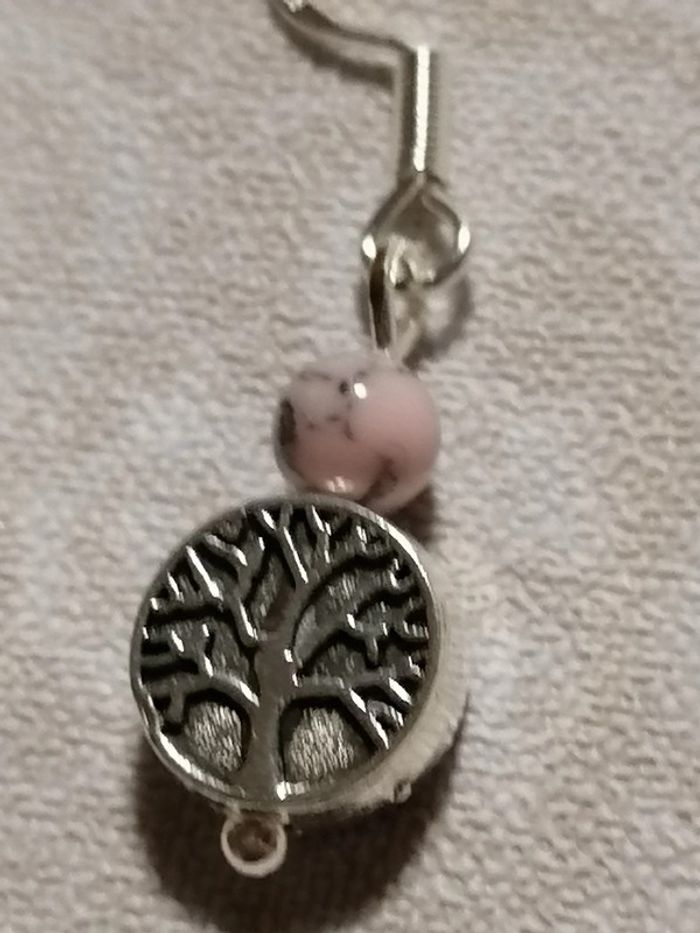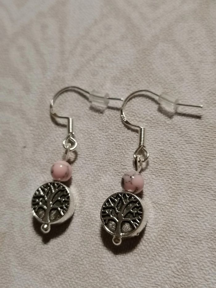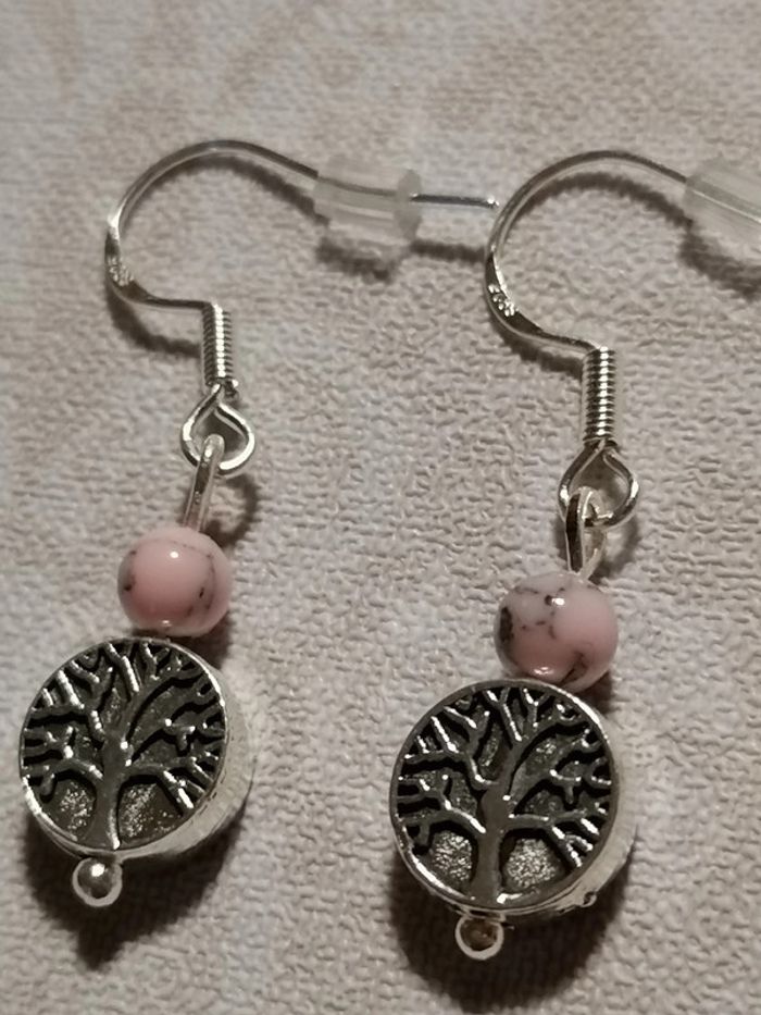 Jolie boucles d'oreilles pendentif en argent avec un petite perle arbre de vie et sa petite perle rose Howlite.