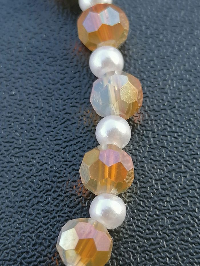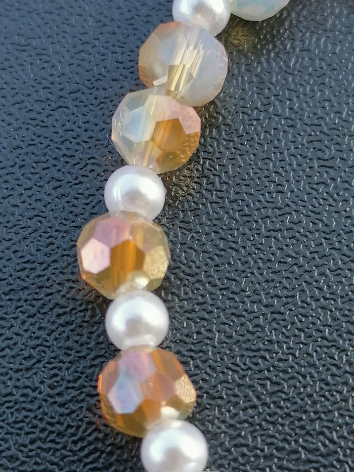 Jolie bracelet élastique avec ses jolies petites a facette orangé et ses petites perles blanches. 18 cm. Autre taille sur demande.
