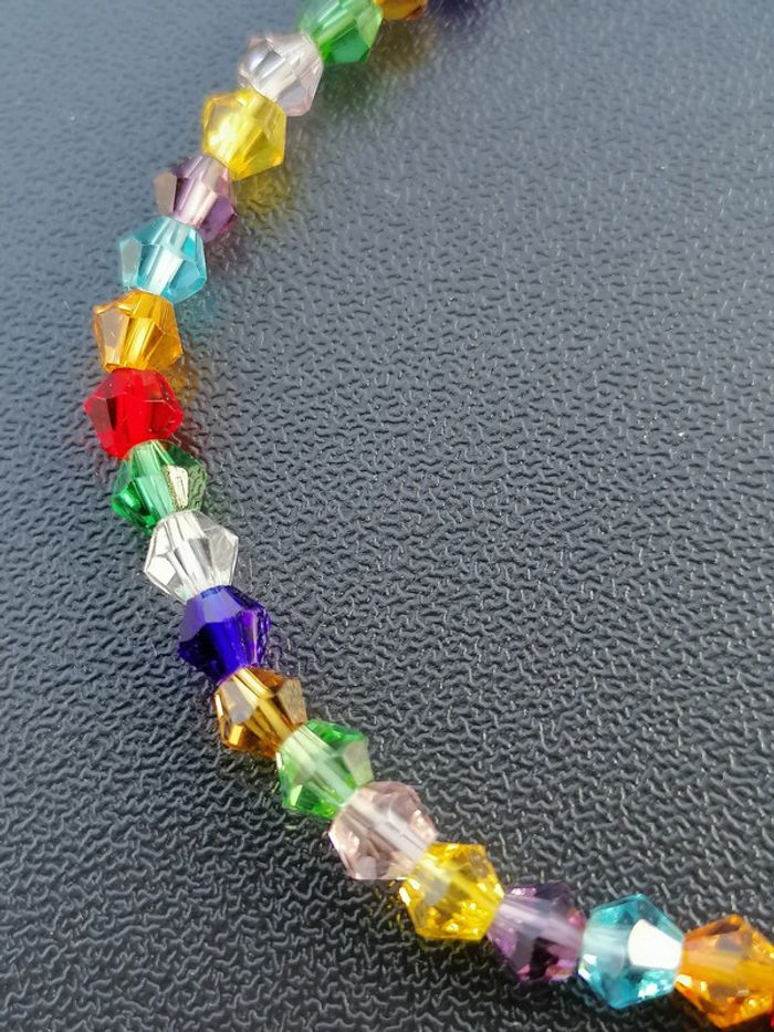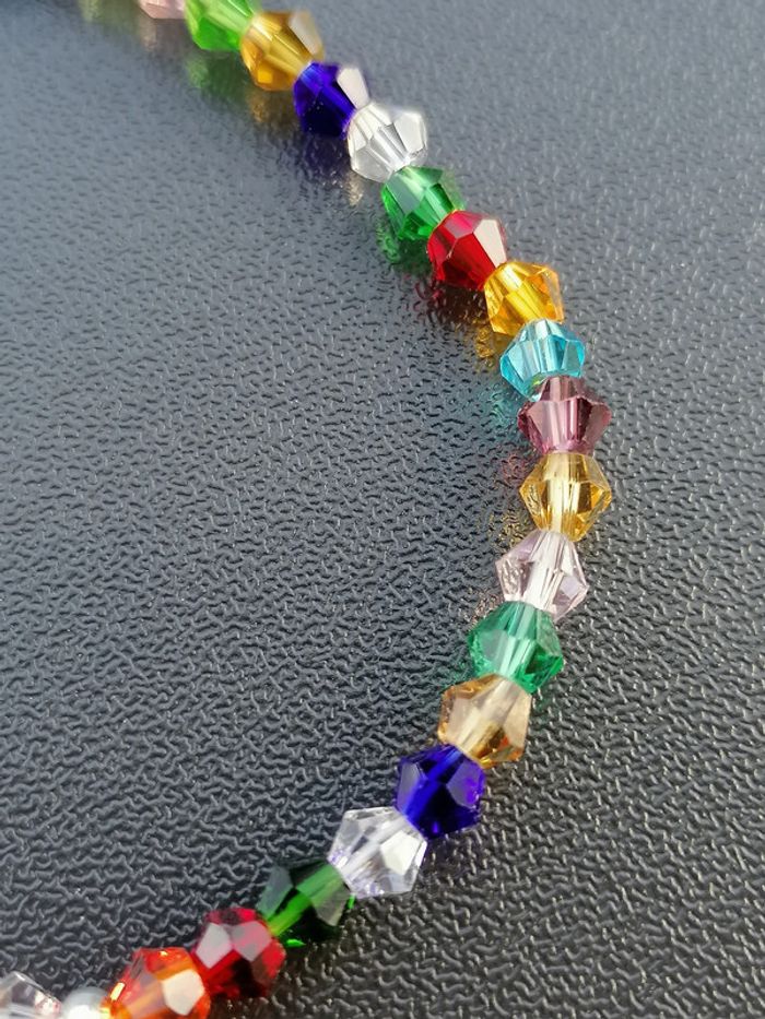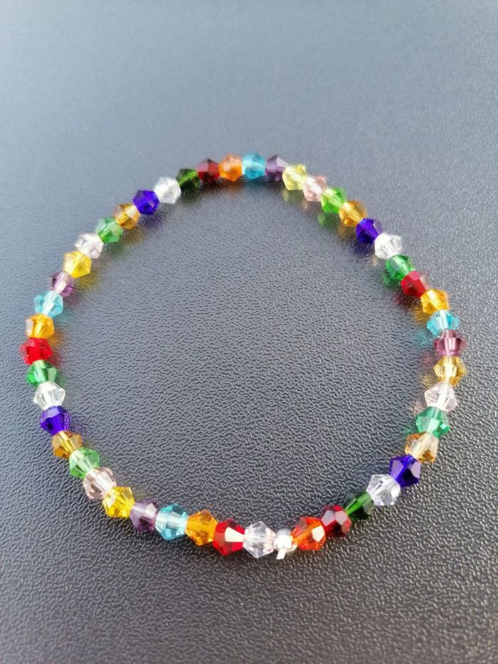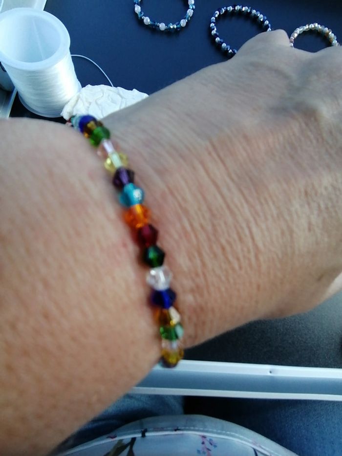 Jolie bracelet élastique avec ses petites perles toupie en verre. 18 cm. Autre taille sur demande