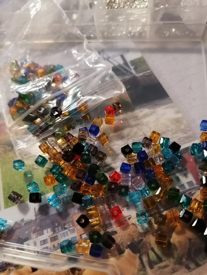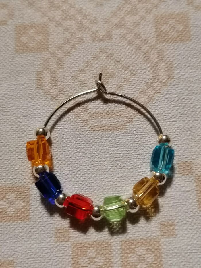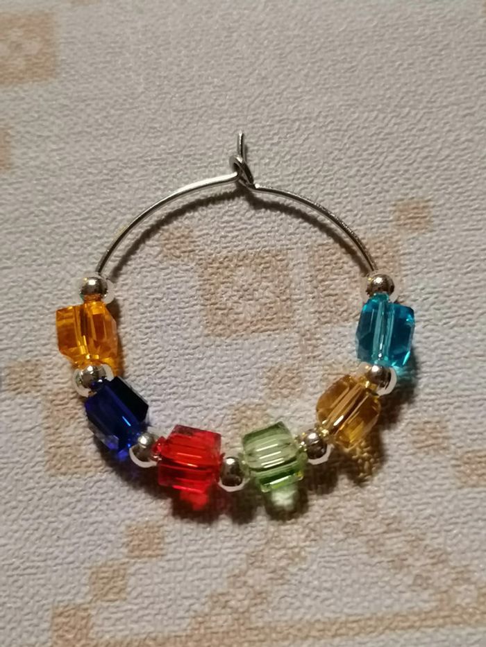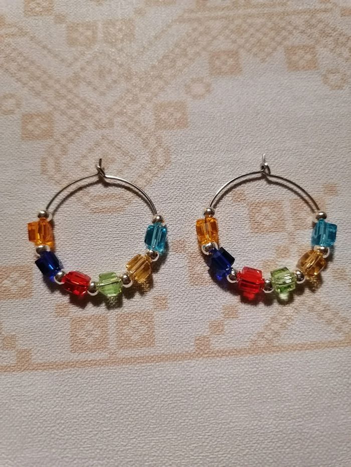 Jolie boucles d'oreilles multicolores avec ses petites perles carré brillantes.