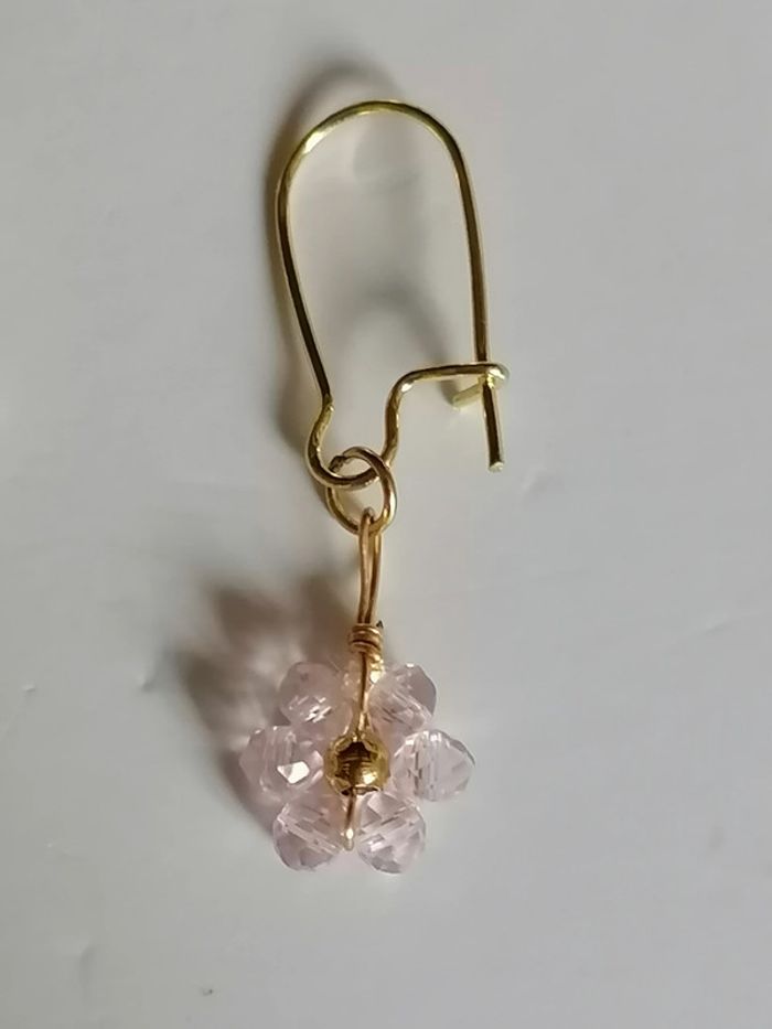 Boucles d'oreilles pendentif dorée avec ses petites fleurs roses.