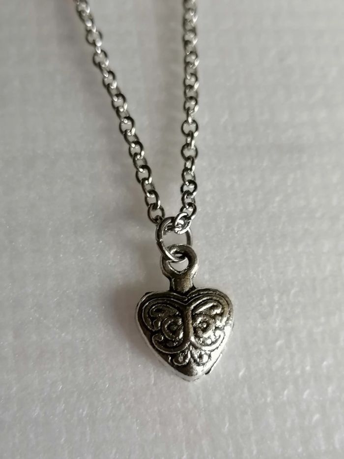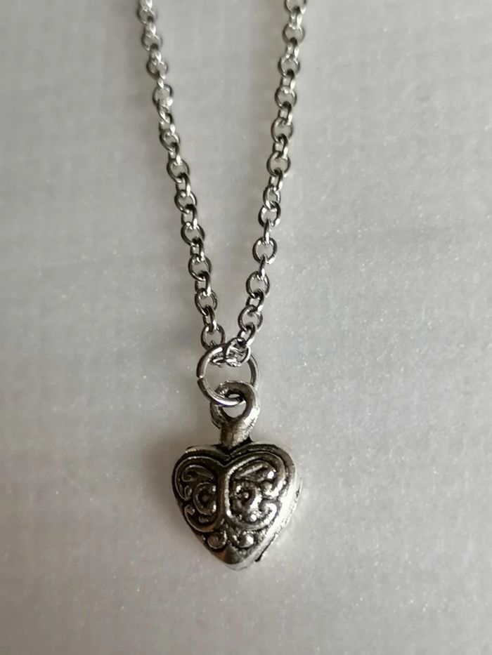 Jolie collier et son pendentif cœur en acier inoxydable argenté. 46 cm. Autre taille sur demande