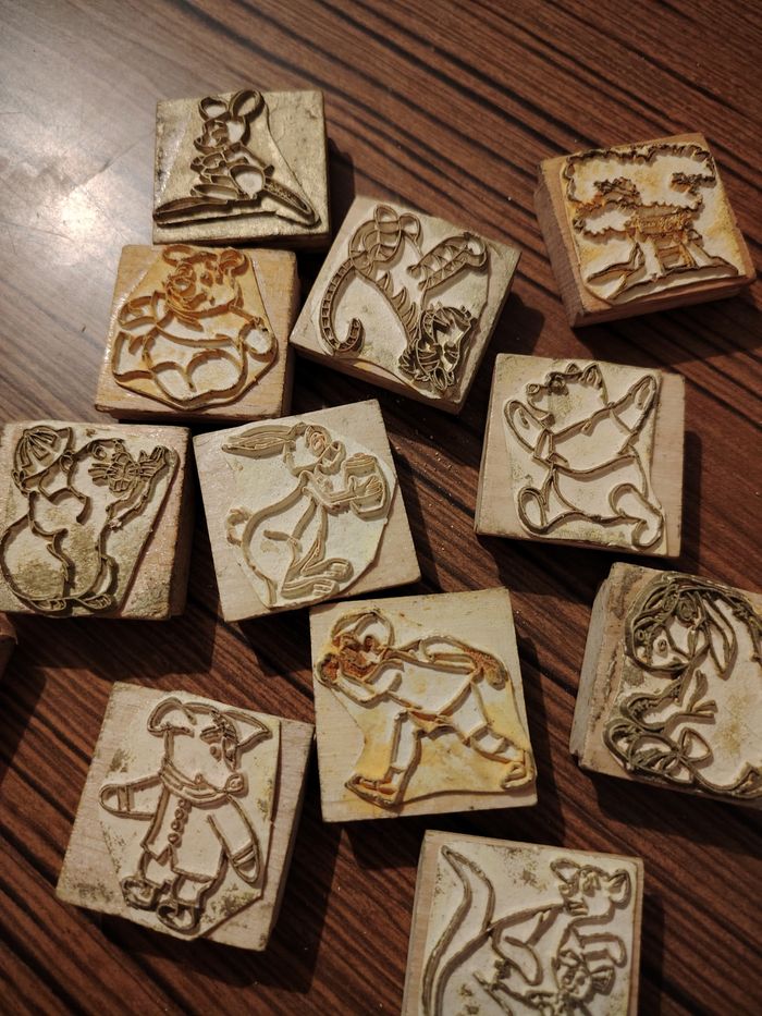 Très bonne état lot de 12 tampon Willy l'ourson déjà servie mais peuvent encore servir il manque l'encre voir photo