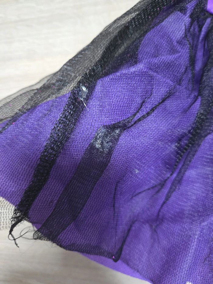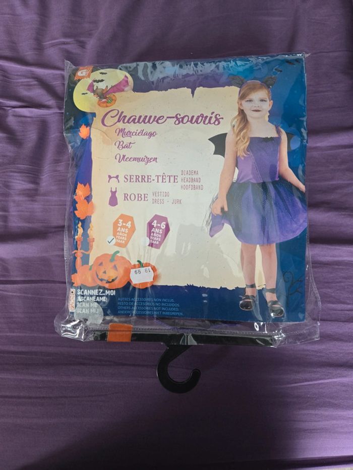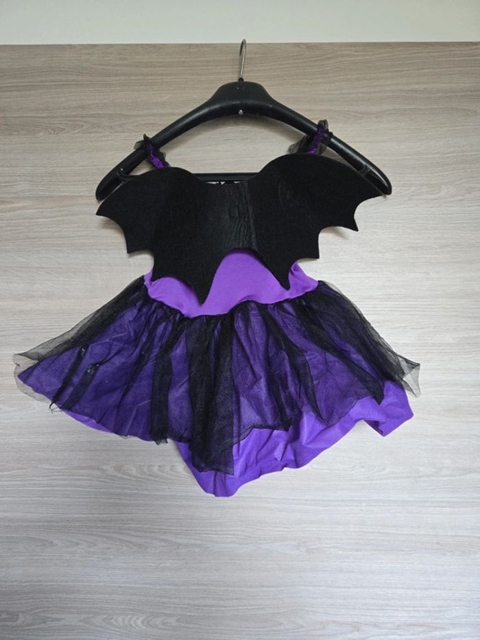 Déguisement : robe, ailes avec scratch et serre-tête. Ensemble porté une fois. Légères traces de colle sur le tulle.