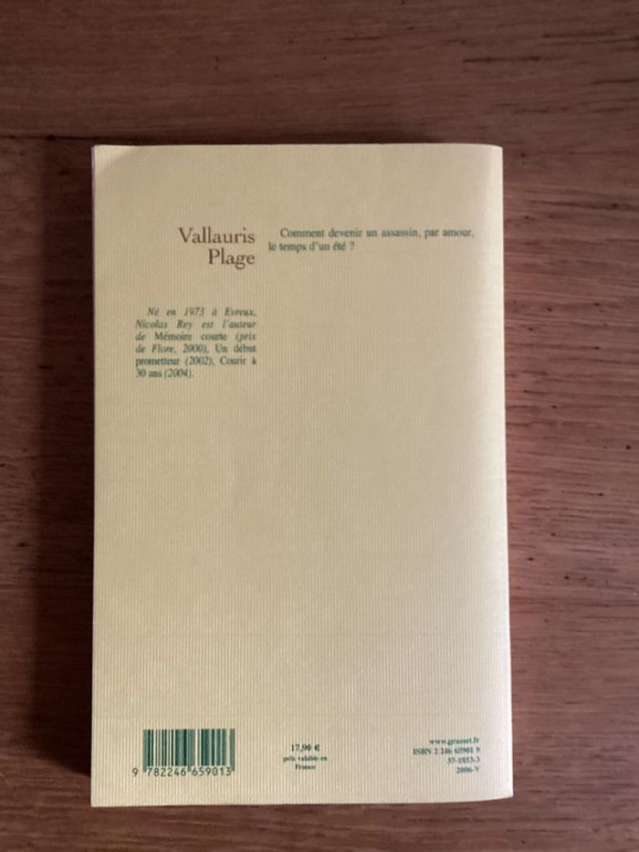 Livre « Vallauris plage » Nicolas Rey Edition Grasset 2006 Une petite tache sur la tranche Prix négociable réduction en achat par lot