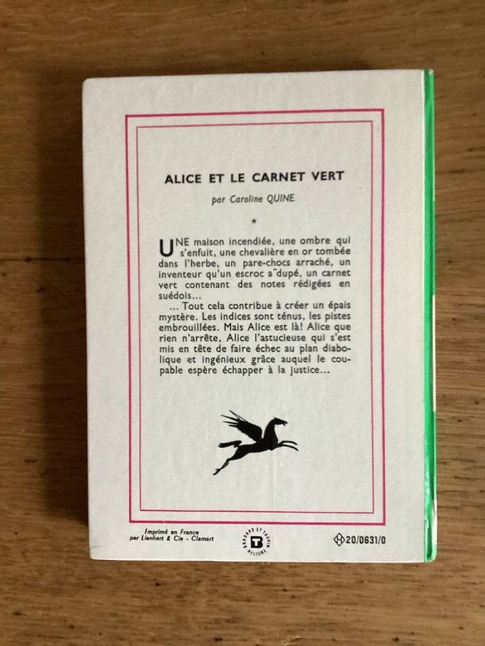 Livre « Alice et le carnet vert » Caroline Quine Édition bibliothèque verte 1968 Couverture un peu abîmée Prix négociable réduction en achat par lot