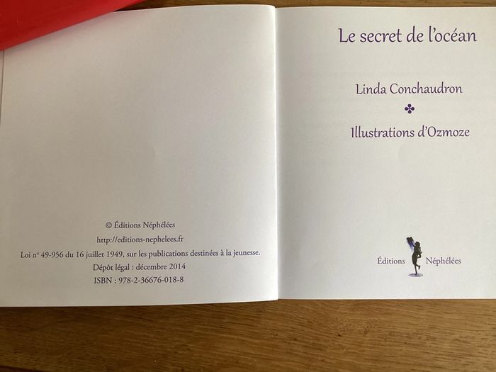 Livre « le secret de l’océan » Linda Conchaudon Edition Nephelees Prix négociable réduction en achat par lot