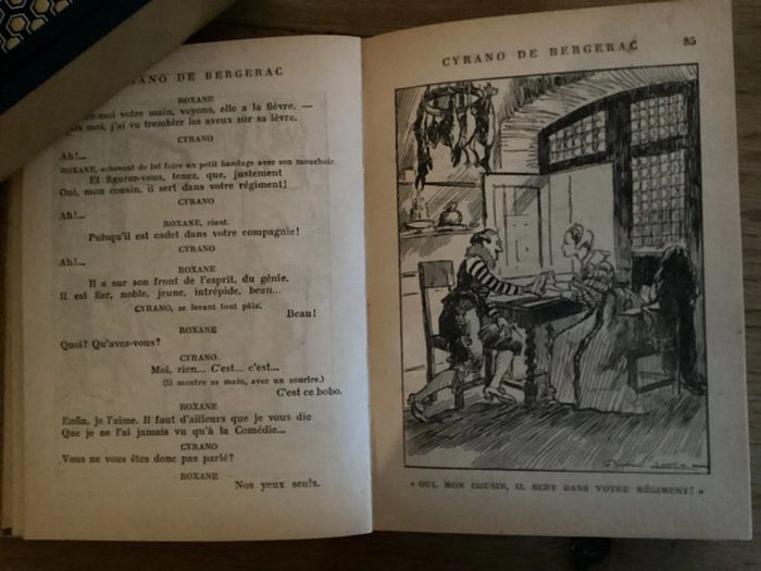 Livre « Cyrano de bergerac » Edmond Rostand Édition Hachette 1947 Intérieur jauni le dos était abîmé j.ai mis un scotch toile Prix négociable réduction en achat par lot