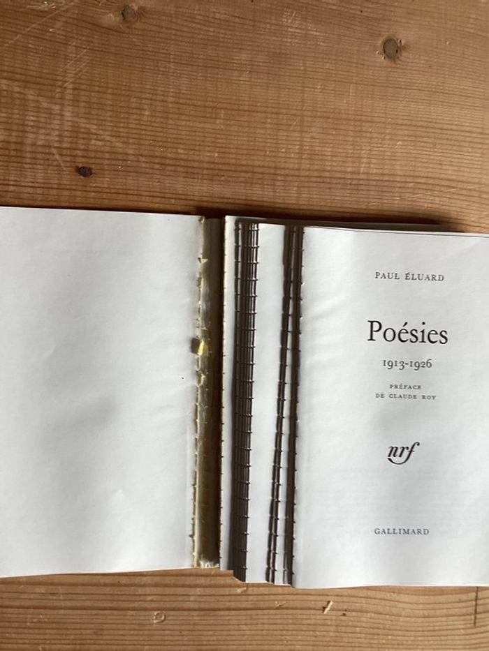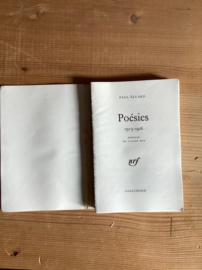 Livre « poésies 1913 - 1926 » Paul Eluard Édition Gallimard Le livre est complètement décollé Couverture jauni