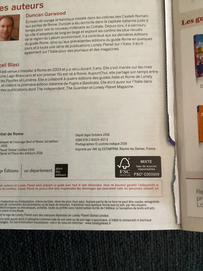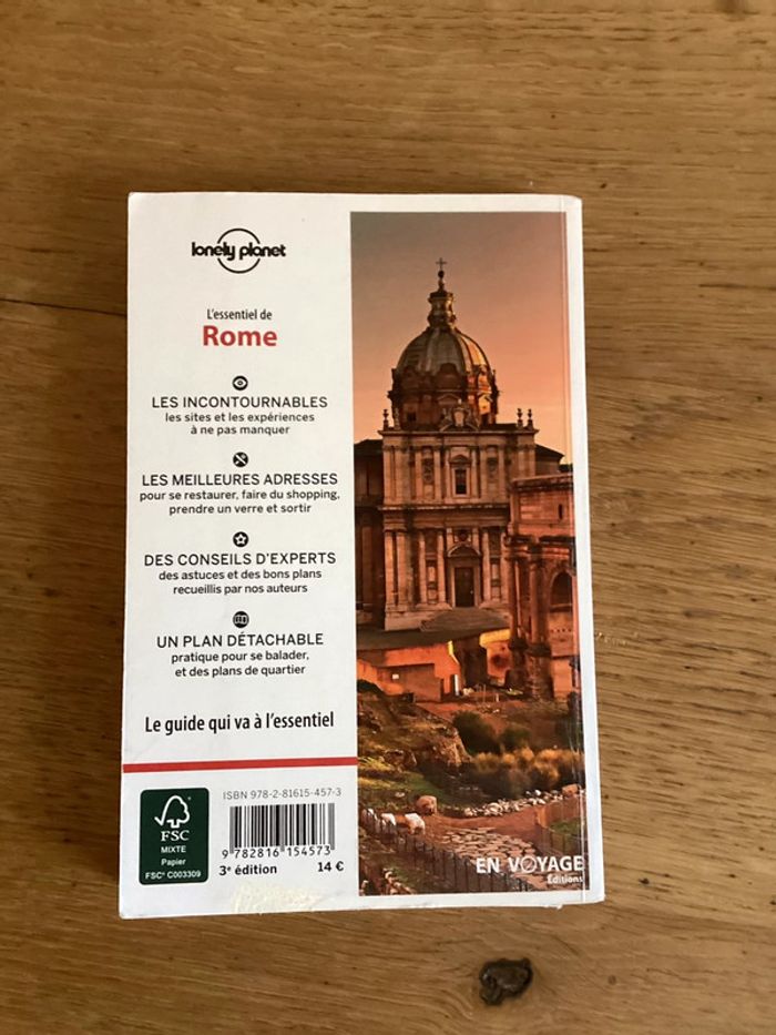 Guide « l’essentiel de Rome » Lonely Planet édition 2016 Plan intégré mais détache Page recollée photo 4 Couverture légèrement abîmée Prix négociable réduction en achat par lot