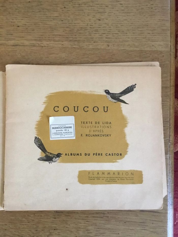 livre « coucou » Lida édition du père castor 1939 couverture abîmée et désolidarisée du livre 1 étiquette collée à l intérieur état satisfaisant vu son grand âge prix négociable réduction en achat par lot