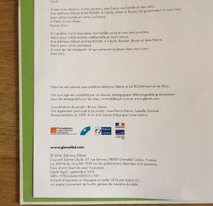 Livre « papa ne sait pas » Alain Dary édition Glenat 2014 couverture et une page abîmée prix négociable et réduction en achat par lot