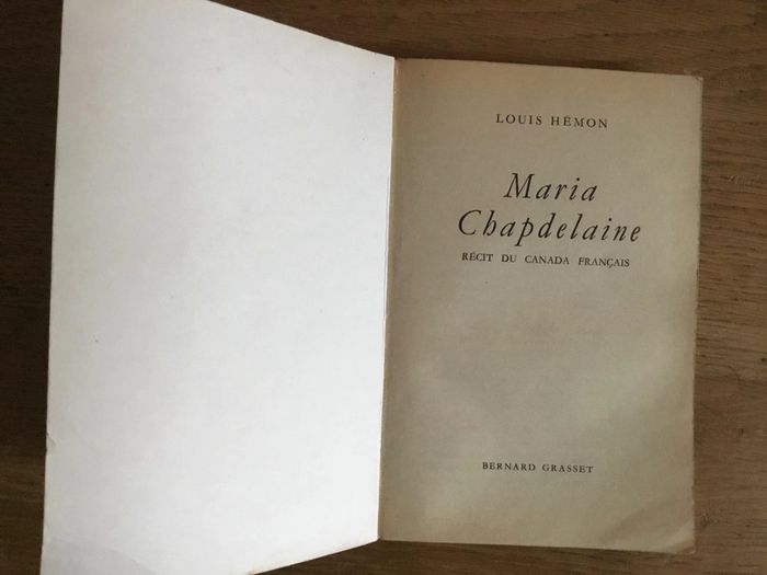 Livre « Maria Chapdelaine » Louis Hemon édition livre de poche 1973 intérieur jauni résume: Maria a 18 ans et vit sur une terre de colonisation au Lac Saint-Jean. Trois hommes la courtisent, trois destins s'offrent à Maria : François Paradis, Lorenzo Surprenant et Eutrope Gagnon. Le premier est un bûcheron épris de liberté, le second est citadin aux États-Unis et le troisième est, comme le père de Maria, un colon. La mort de la mère de Maria, les qualités qu'on lui trouve, orientent Maria vers un rôle semblable