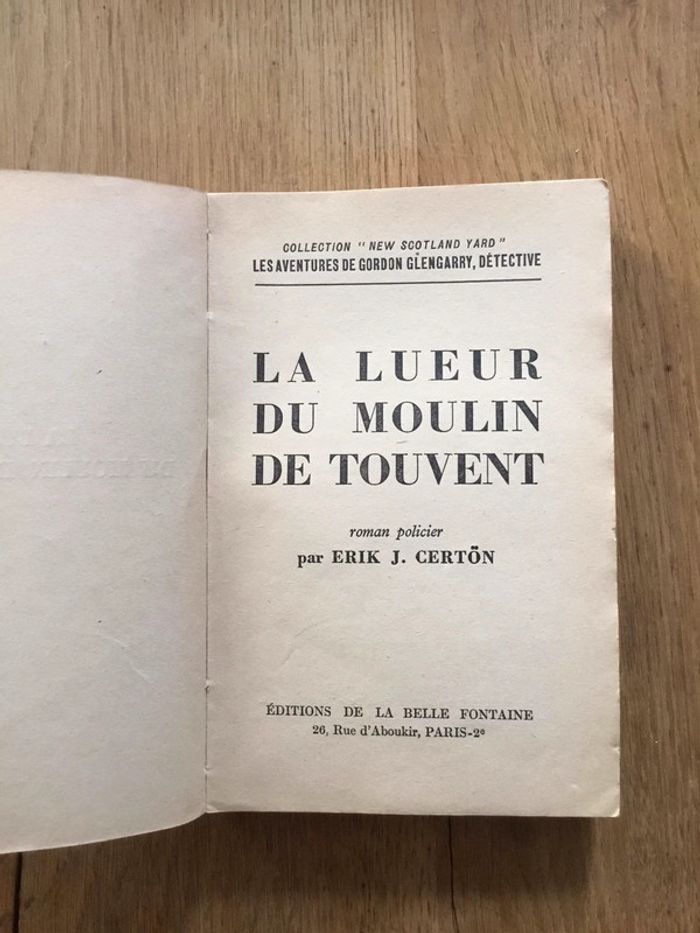 Livre « la lueur du moulin de touvent » collection new scotland yard édition Belle fontaine 1946 traces d’usure prix négociable réduction en achat par lot