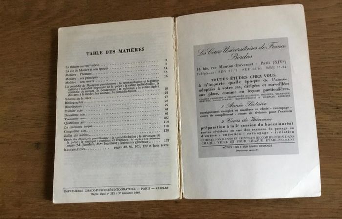 Livre « le bourgeois gentilhomme » Molière édition bordas 1965 trace d usure