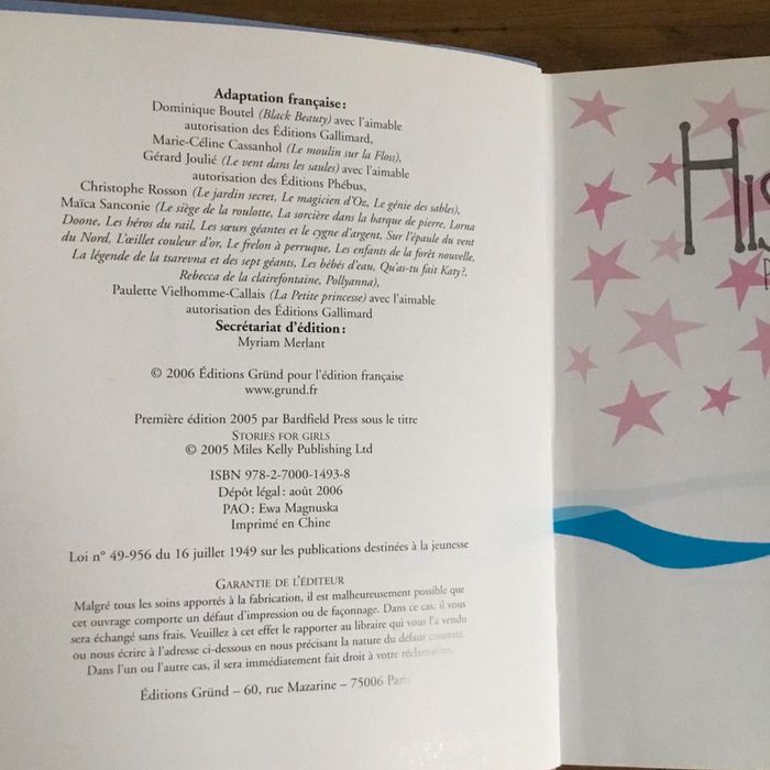 Livre « histoires pour les filles » édition grund prix négociable réduction en achat par lot