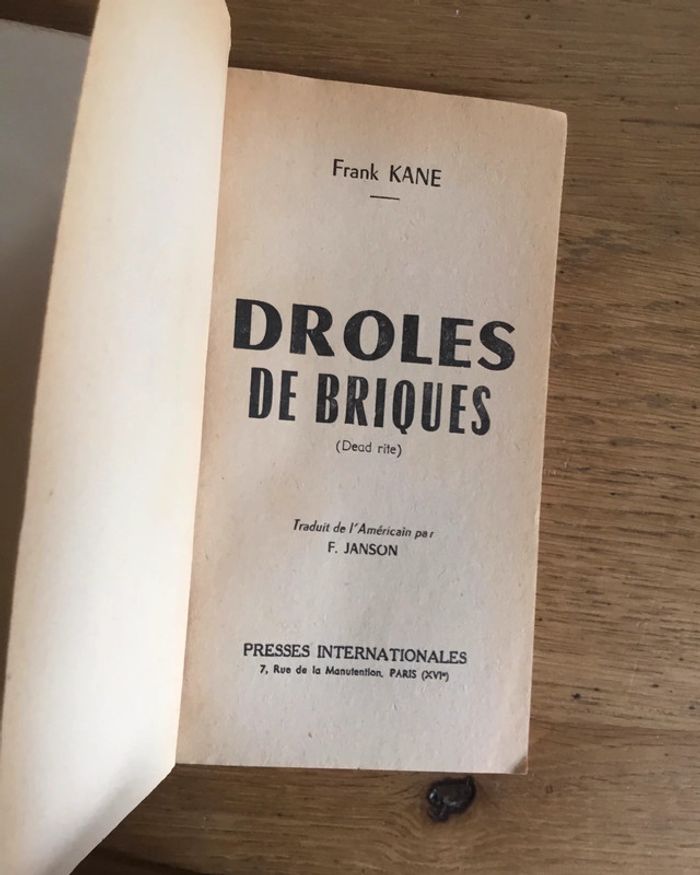 livre « drôle de briques » Frank Kane édition presse internationale intérieur jauni trace d usure sur la couverture prix négociable réduction en achat par lot