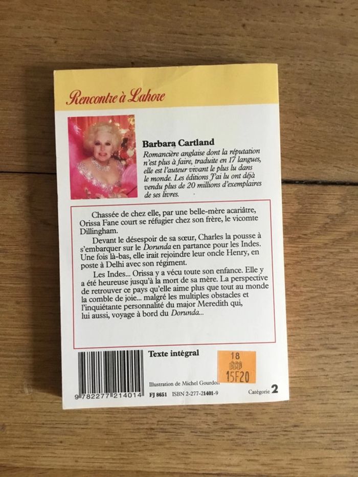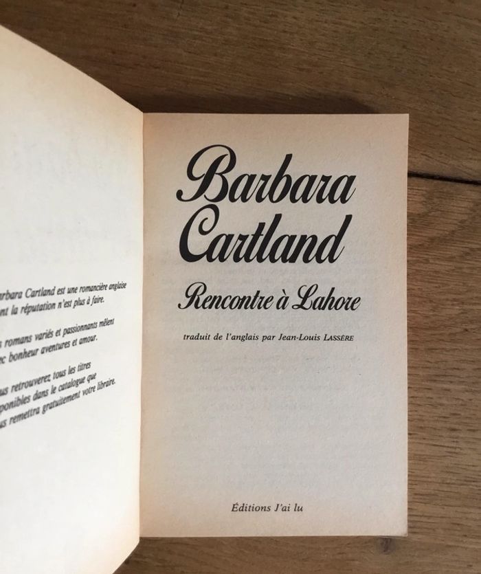 Livre « rencontre à Lahore » Barbara Cartland édition j’ai lu couverture un peu pliée intérieur jauni réduction en achat par lot