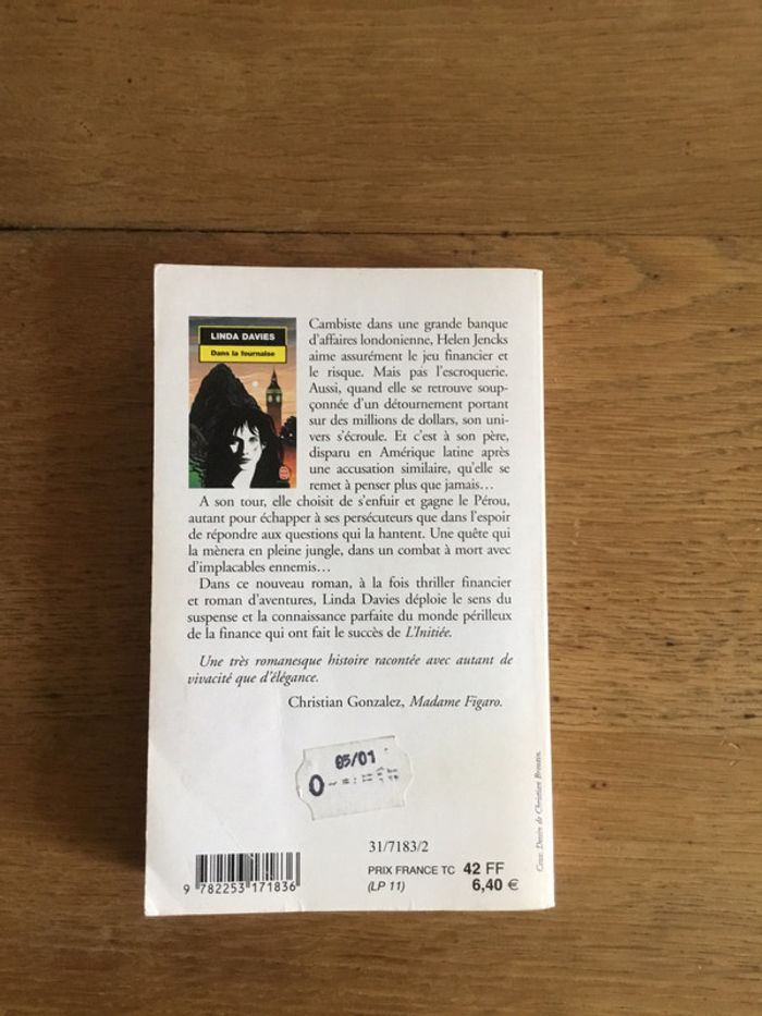 Livre «  dans la fournaise » Linda Davies édition le livre de poche page pliée intérieur jauni prix négociable et réduction en achat par lot