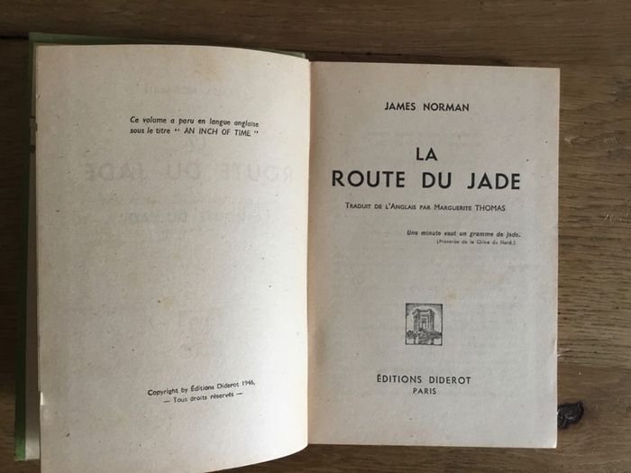 Livre « la route du jade » James Norman édition Diderot 1946 traces d usures prix négociable et réduction en achat par lot