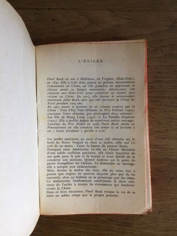 Livre « l’exilée » Pearson Buck édition livre de poche couverture abîmée intérieur jauni prix négociable et réduction en achat par lot
