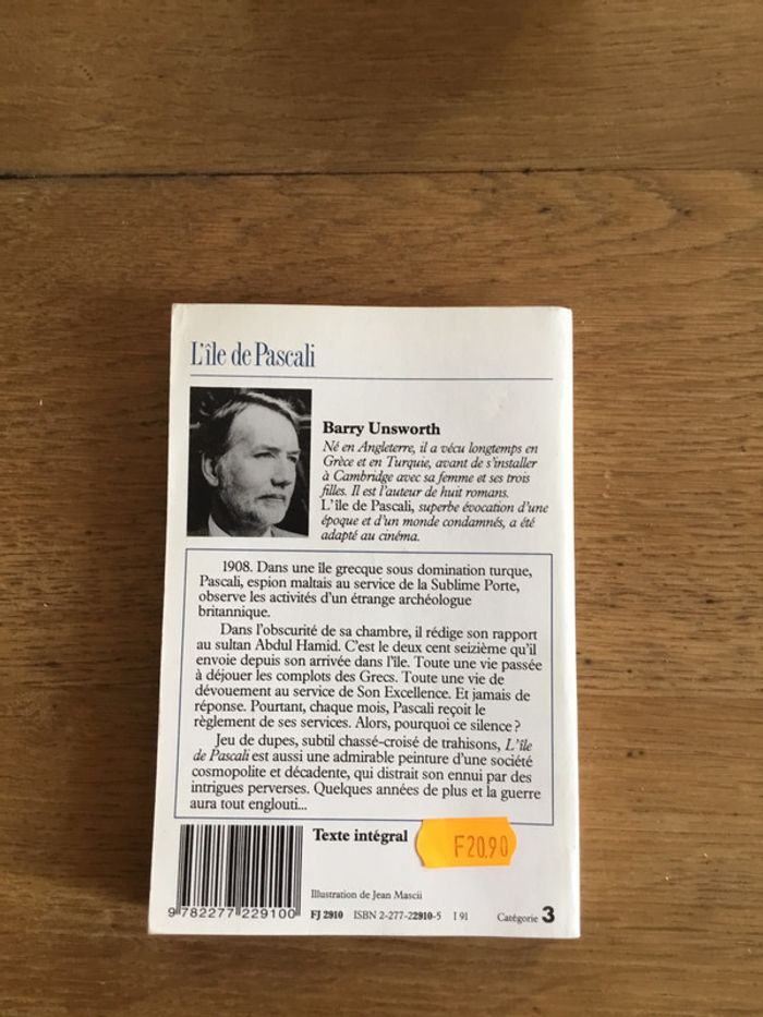 Livre « l’ile de Pascali » Barry Unsworth édition j’ai lu couverture abîmée intérieur jauni prix négociable et réduction en achat par lot