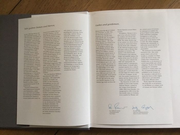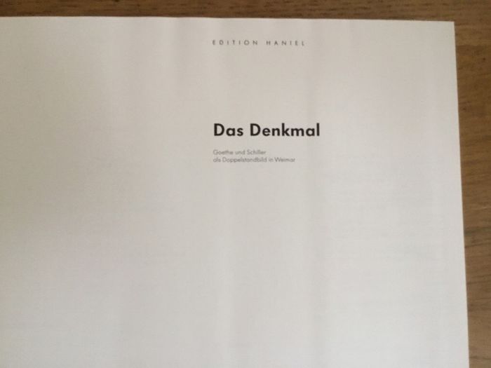 livre allemand das Denkmal Goethe et Schiller als doppelstandbild in Weimar édition Haniel reçu lors de Weimar 1999 Kulturstadt europas prix négociable et réduction en achat par lot