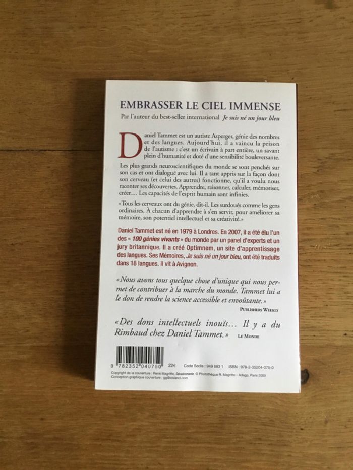 Livre « embrasser le ciel immense » Daniel Tammet édition les arènes prix négociable et réduction en achat par lot
