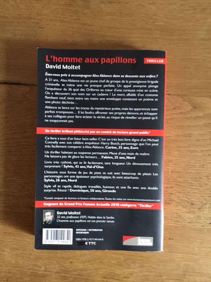 Livre « l’homme aux papillons » David Moitet édition les nouveaux auteurs prix négociable et réduction en achat par lot