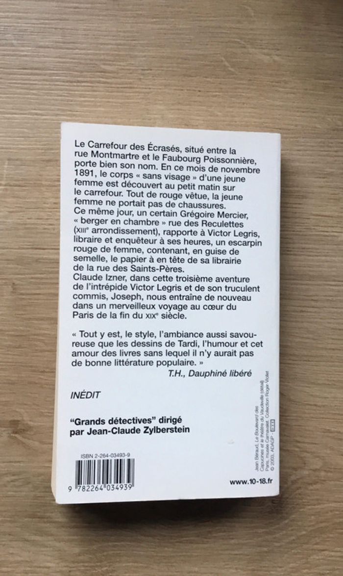 Livre « le carrefour des écrases  » Claude Izner édition 10/18 problème de collage à l intérieur mais pas décollé prix négociable et réduction en achat par lot