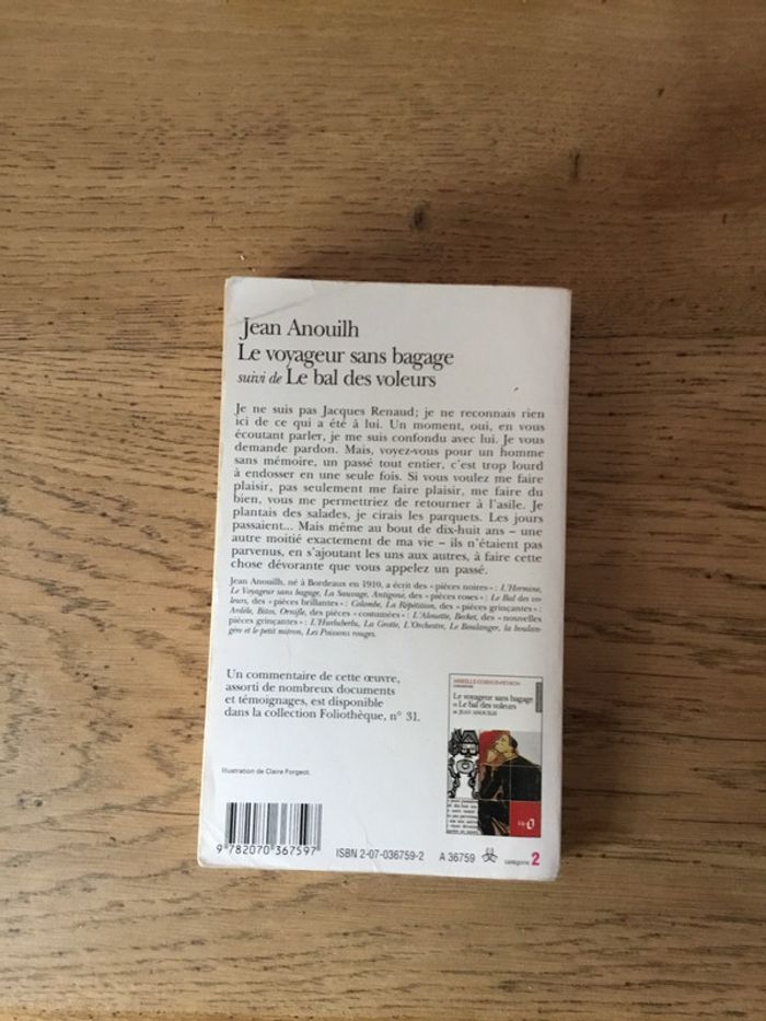 Livre « le voyageur sans bagage » Jean Anouilh édition folio couverture cornée prix négociable et réduction en achat par lot