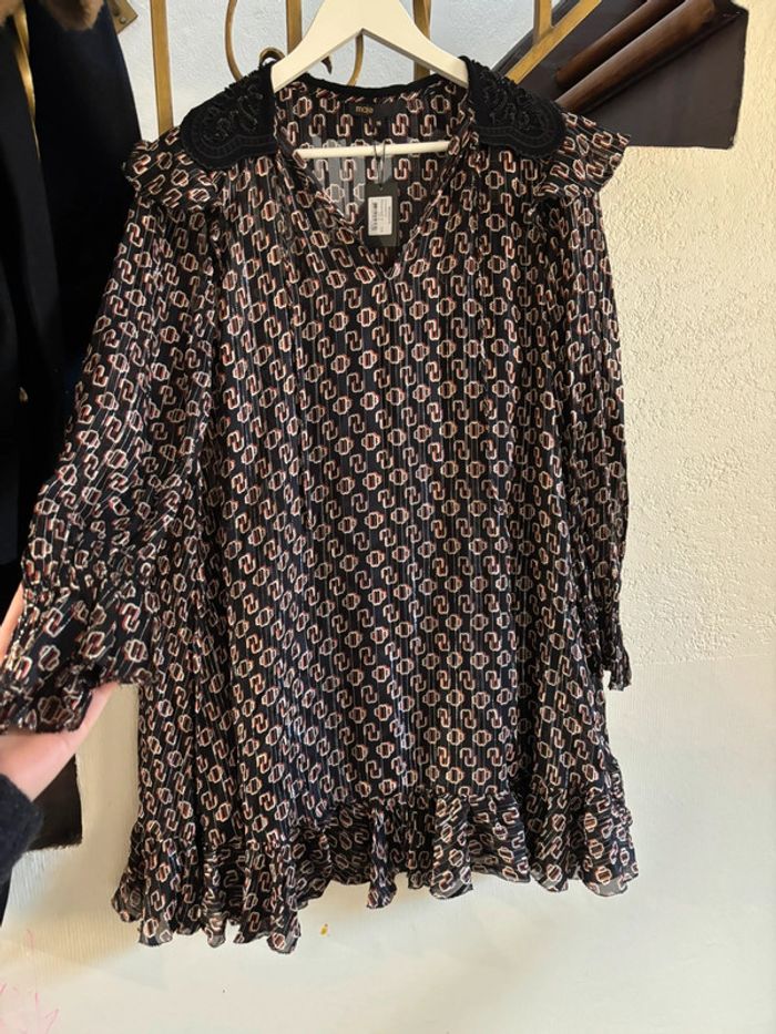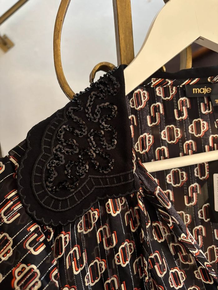Robe maje Taille 36 Monogramme , logo de la marque, liserés argenté Col noir à strass Neuf avec étiquette Prix d’achat : 375 euros Volants sur le bas Il faut mettre un fond de robe en dessous (que je n ai pas) #robe #robemaje #neuve #neufetiquette #Majeparis #cadeau #monnograme monogram jurk logo strass kraag nieuw label ideaal cadeau monogram dress logo rhinestone collar new label ideal gift Monogramm Kleid Logo Strass Kragen neues Label ideales Geschenk Vestido con monograma y logotipo, collar de diamantes de imitación, nueva etiqueta, regalo ideal vestido monograma logotipo strass colar novo rótulo presente ideal monogramma vestito logo strass colletto nuova etichetta regalo ideale