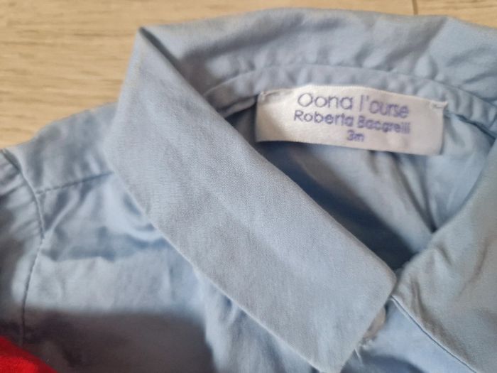Adorable lot avec : 1 jeans Orchestra 1 short à petites poches Cocoon 1 chemise rouge avec palmier brodé 100% coton 1 chemise body bleu clair Oona l'Ourse, Roberta Bacarelli Tout est en très bon état (juste étiquette intérieure de la chemise rouge qui est déteinte) Envoi rapide et soigné Réduction sur les lots
