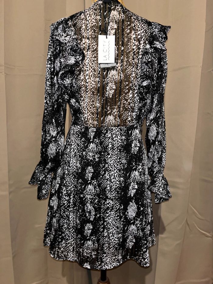Robe la city noir blanc et doré Taille 42 Neuve Dos transparent #mamikro2robe #mamikro2taille42 #lacity #dostransparent #robe #robe42 #robelacity
