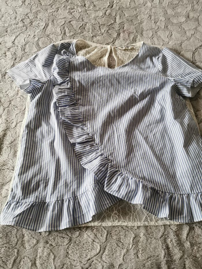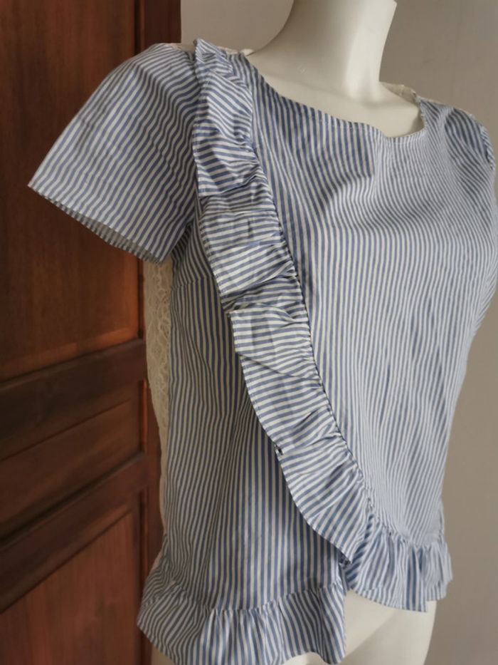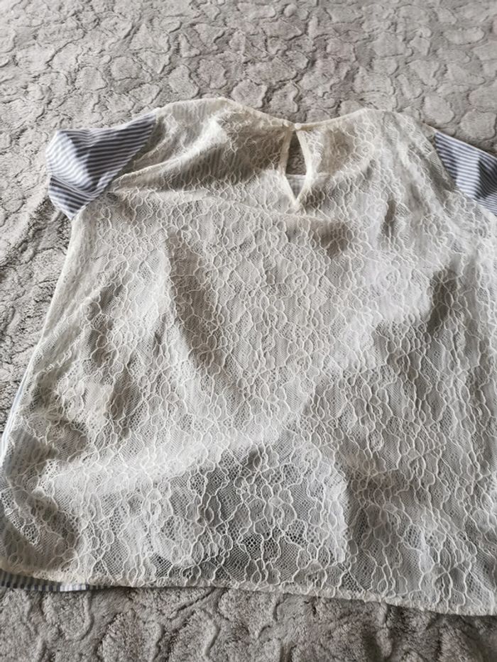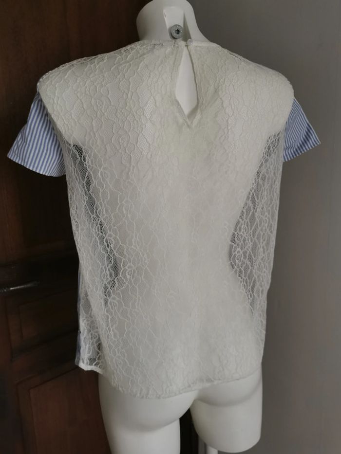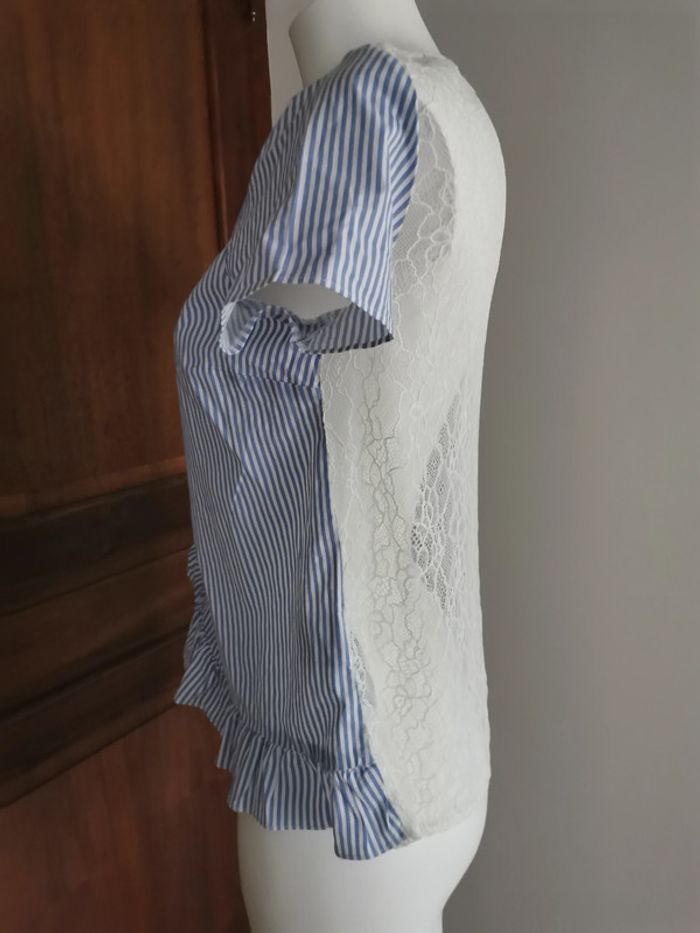 Blouse Naf Naf à rayures, dentelle et volants - photo numéro 7