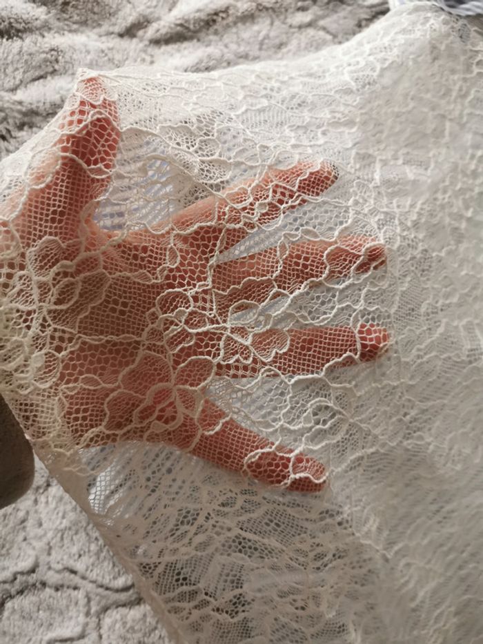 Blousemanches courtes, à rayures bleu et blanc, dentelle blanches et volants. Marque naf Naf, en très bon état, taille marquée XL, mais je pense que c'est du 36/38, taille très petit, attention regardez les mesures ci dessous avant tout achat. Mannequin fait la taille 36, composition blouse : 50% coton, 50% polyamide. Mesures : Largeur dos entre les aisselles : 50 cm Largeur dos entre les épaules : 38 cm Largeur taille : 50 cm Longueur : 58 cm Longueur manche depuis l'aisselle : 3 cm Longueur manche depuis l'épaule : 16 cm Largeur manche : 15cm Poids : 78g #blousearayures #blousedentelle #blousevolants #blousenafnaf