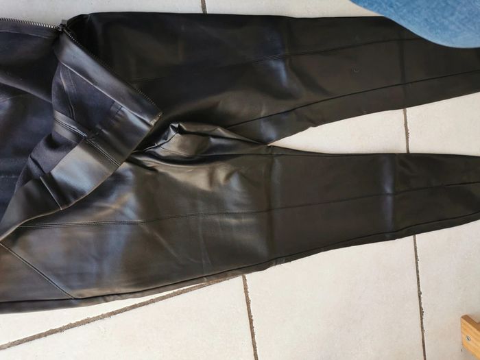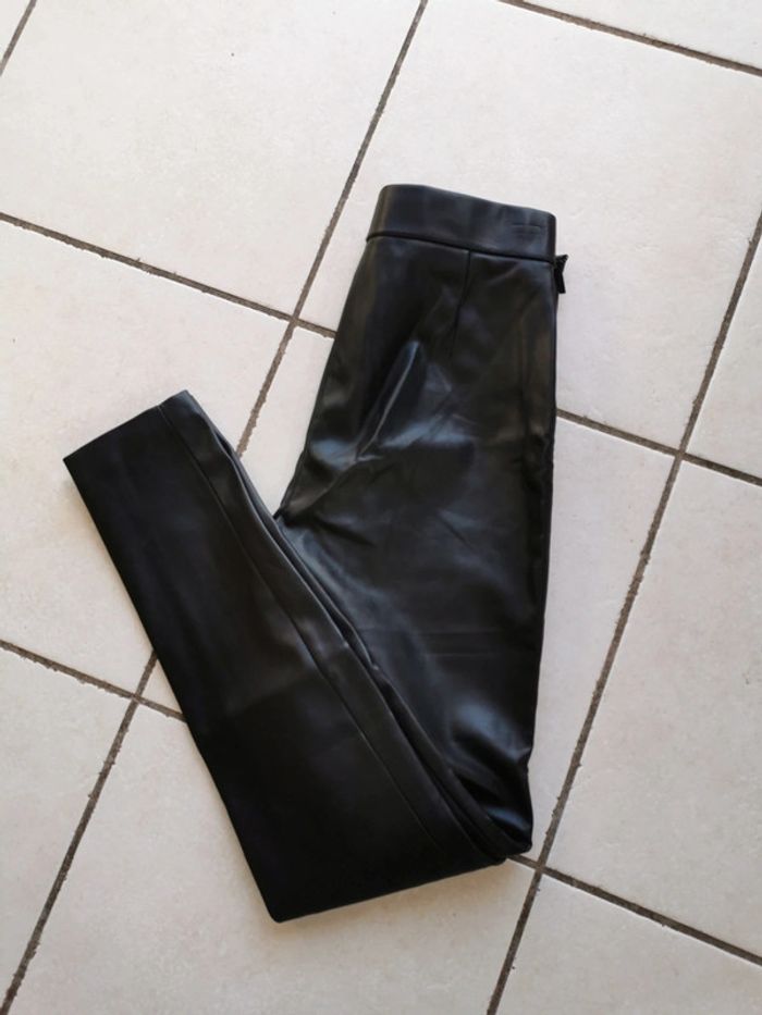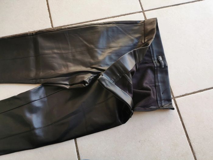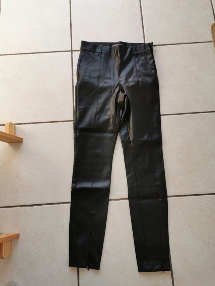 Legging thermo zara en simili cuir / faux cuir Sculptant Fentes avec zip dans le bas Taille xs Neuf