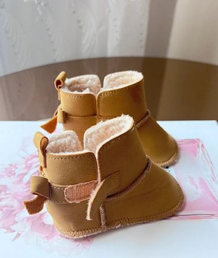 Paire de chaussons bottines fille hiver 3-6 mois Coloris marron clair Fourré à l’intérieur À scratch sur les côtés Avec noeuds derrière J’ai d’autres modèles de chaussures chaussons 📩Je réponds rapidement aux messages 📦Envoi rapide et soigné