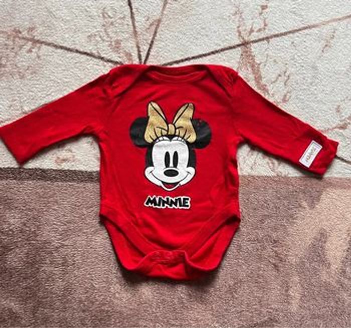 Bodie bébé à manches longues indiqué 0-3 mois (naissance) Disney Minnie Primark Coloris rouge, noir, blanc et doré Imprimés un peu effacé devant 📩Je réponds rapidement aux messages 📦Envoi rapide et soigné
