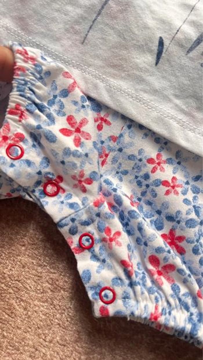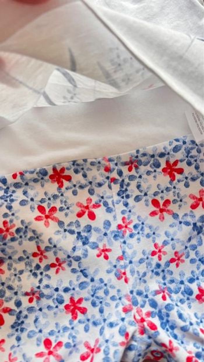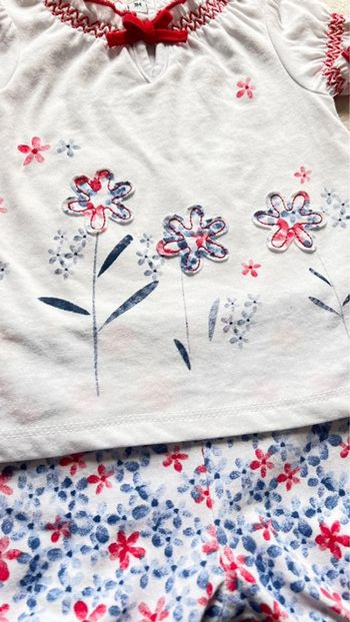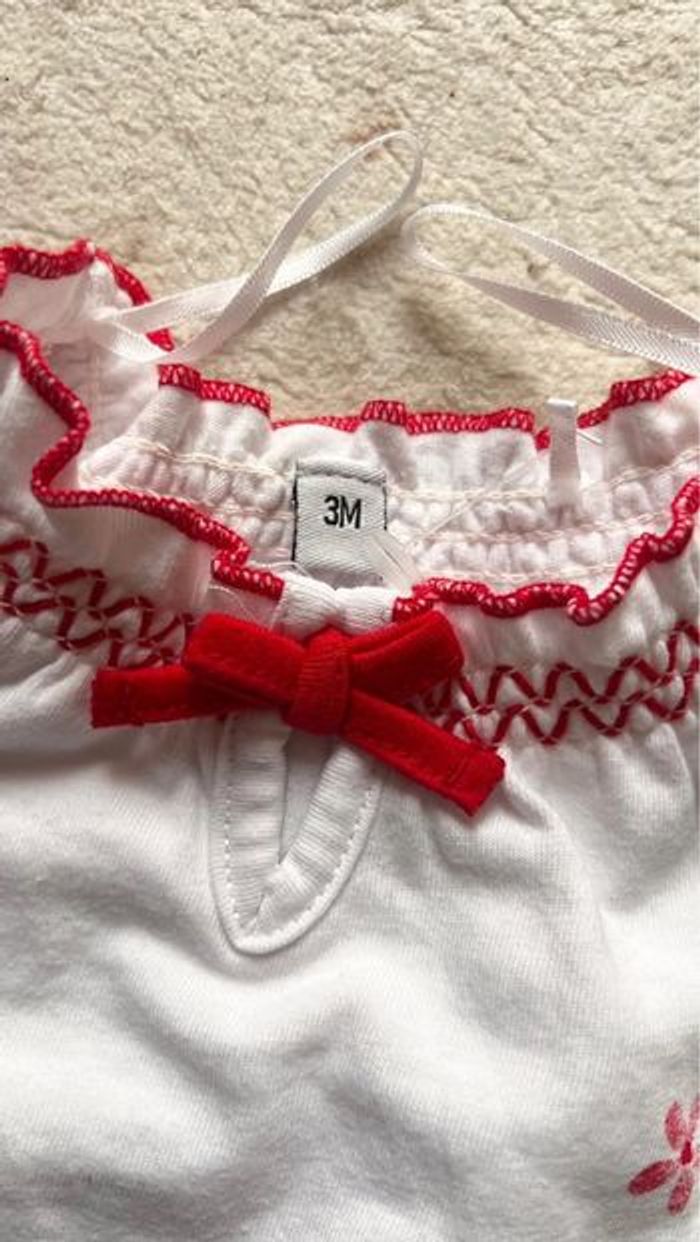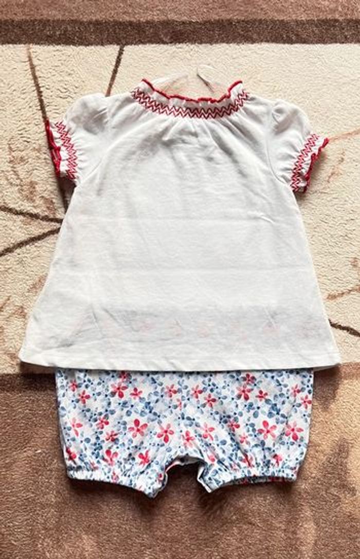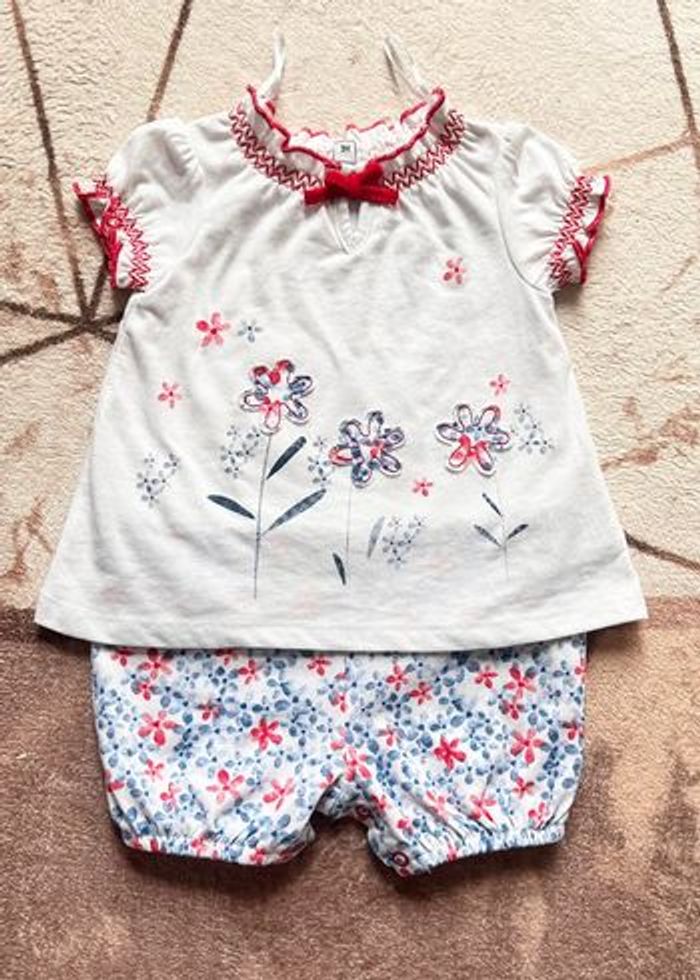 Combishort (t-shirt et short accrochés) 1 pièce bébé fille 3 mois Neuve avec plastique sur l’étiquette Coloris blanc, bleu et rouge Boutons pression à l’entrejambe En coton et polyester Élastique au bras et autour du col Idéal pour offrir 📩Je réponds rapidement aux messages 📦Envoi rapide et soigné