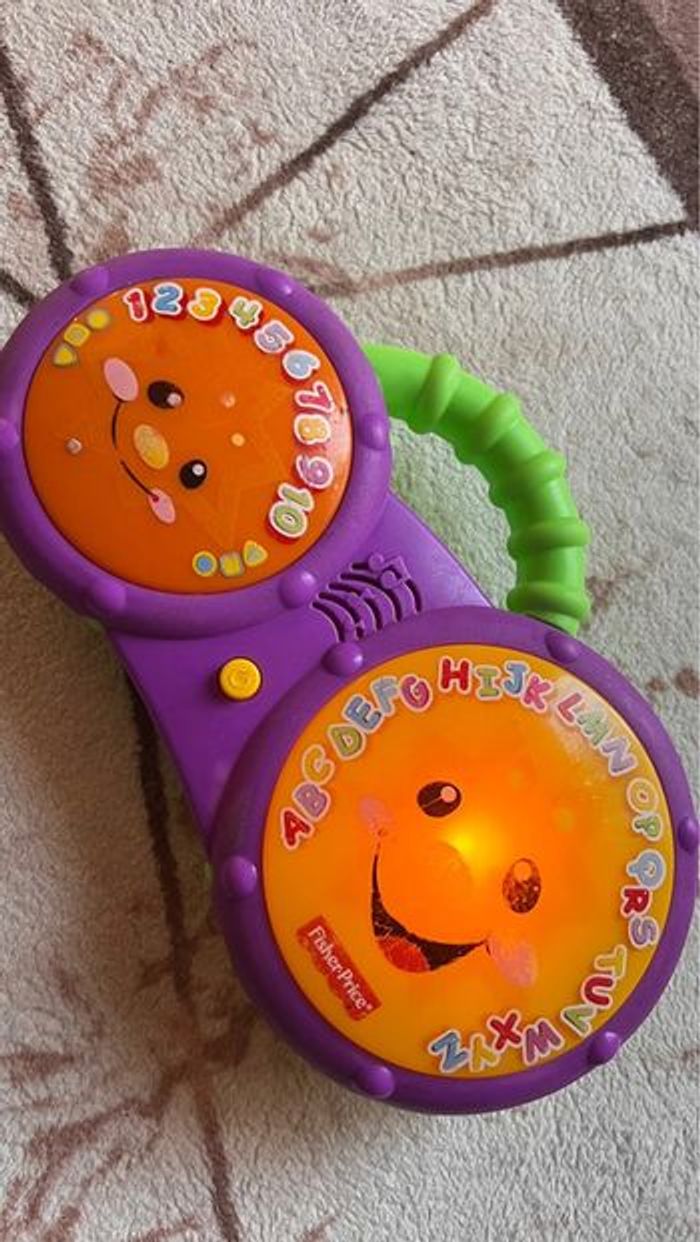Tam tam Fisher Price Jouet d’éveil musical et sonore Quand bébé tape sur le jouet différents sons chansons et lumières pour amuser bébé Piles fournies Quelques traces 📩Je réponds rapidement aux messages 📦Envoi rapide et soigné