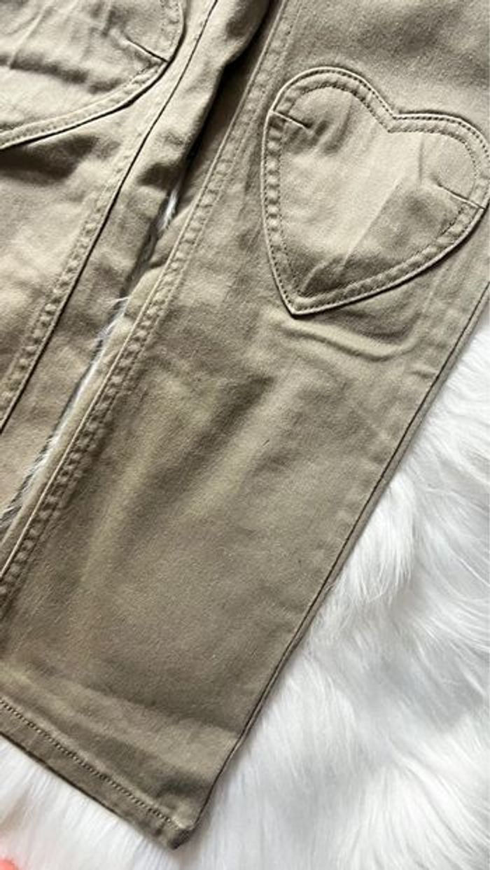 Très jolie salopette fille H&M Indiqué 7-8 ans Coloris marron clair quelques détails en rose Genoux en cœur Extérieur 98 % coton 2 % elasthanne Doublure partie supérieure 100 % coton Maison non fumeur et sans animaux À noter deux petits points de stylo en bas très discret Peu portée 📩Je réponds rapidement aux messages 📦Envoi rapide et soigné
