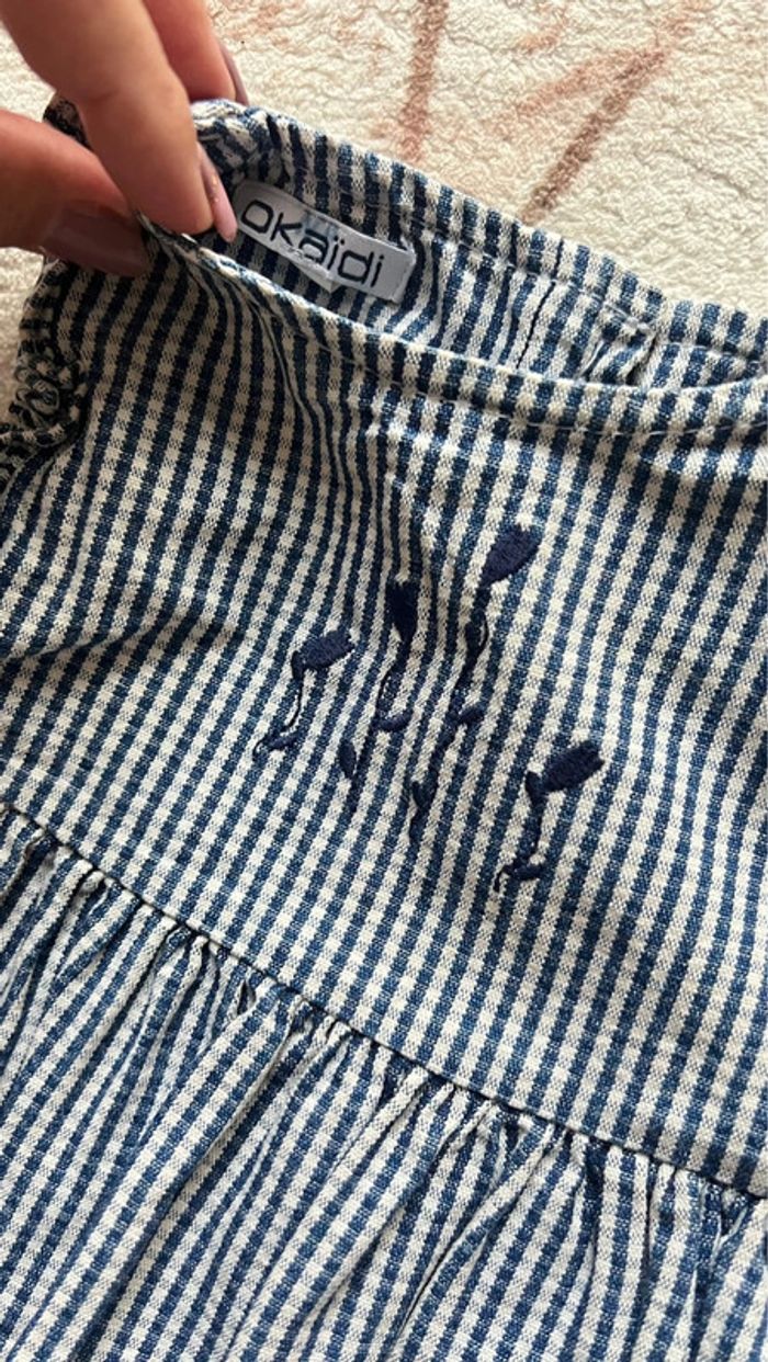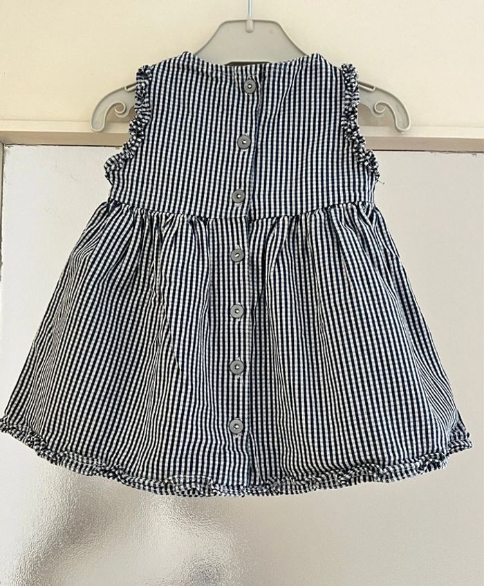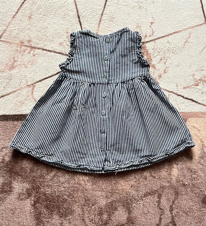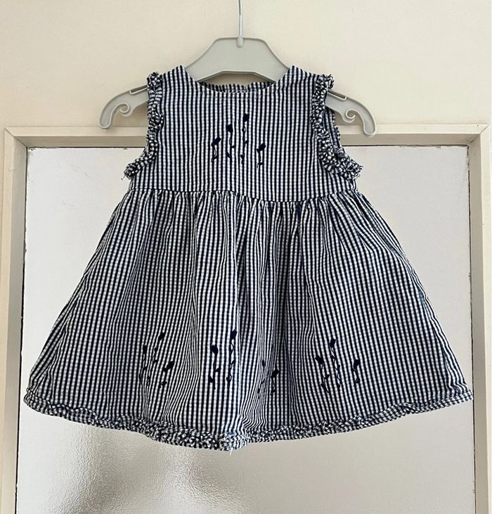 Robe Okaïdi Vichy coloris bleu et blanc 6 mois 100 % coton matière jeans Boutons derrière Avec un haut ou pull près du corps sera parfaite 🤩 Maison non fumeur et sans animaux 📩Je réponds rapidement aux messages 📦Envoi rapide et soigné